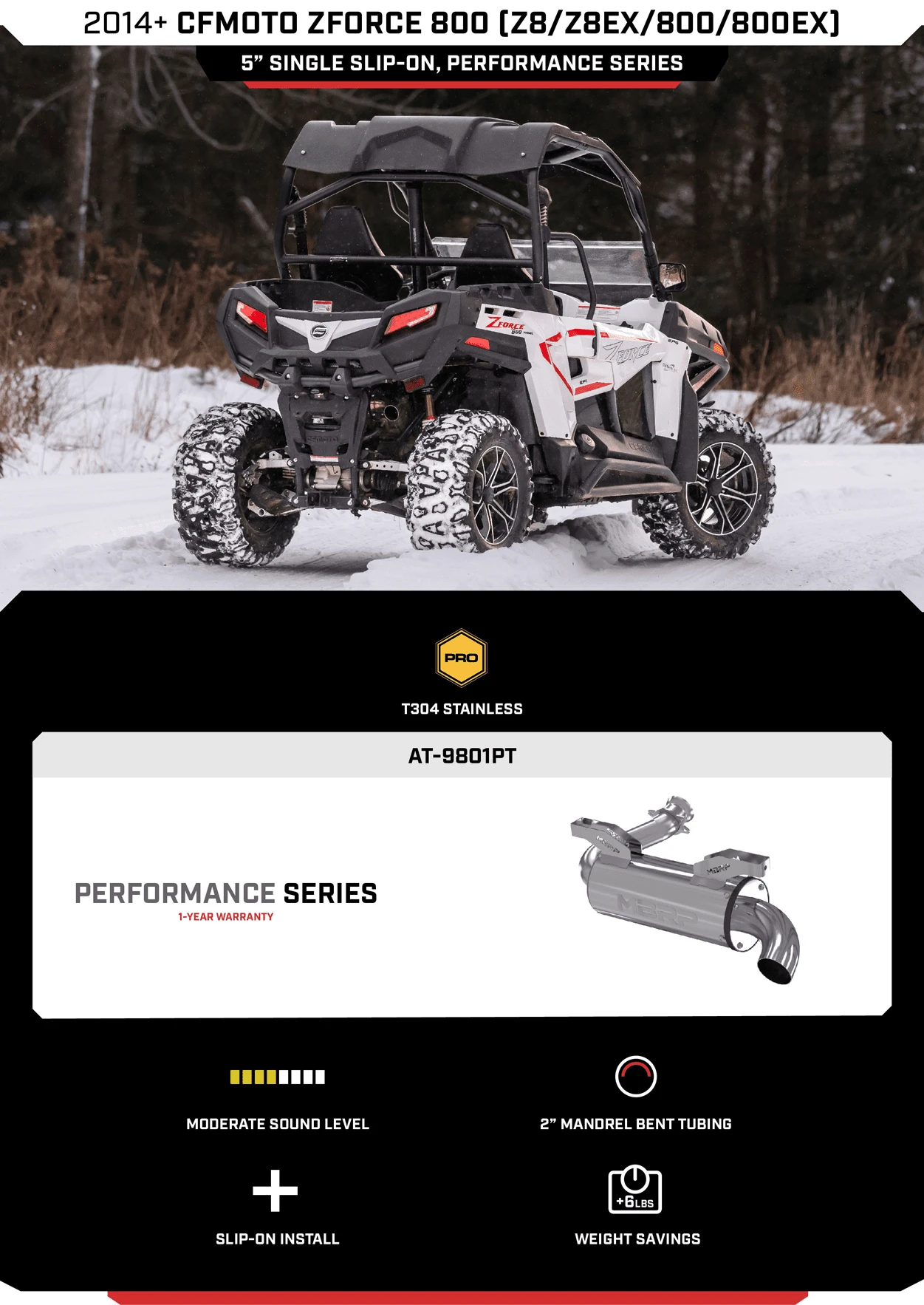 MBRP 5″ Slip-on Muffler, 2014-2022 CFMOTO ZFORCE 800 (Z8/ Z8EX/ 800/ 800EX) Performance Series