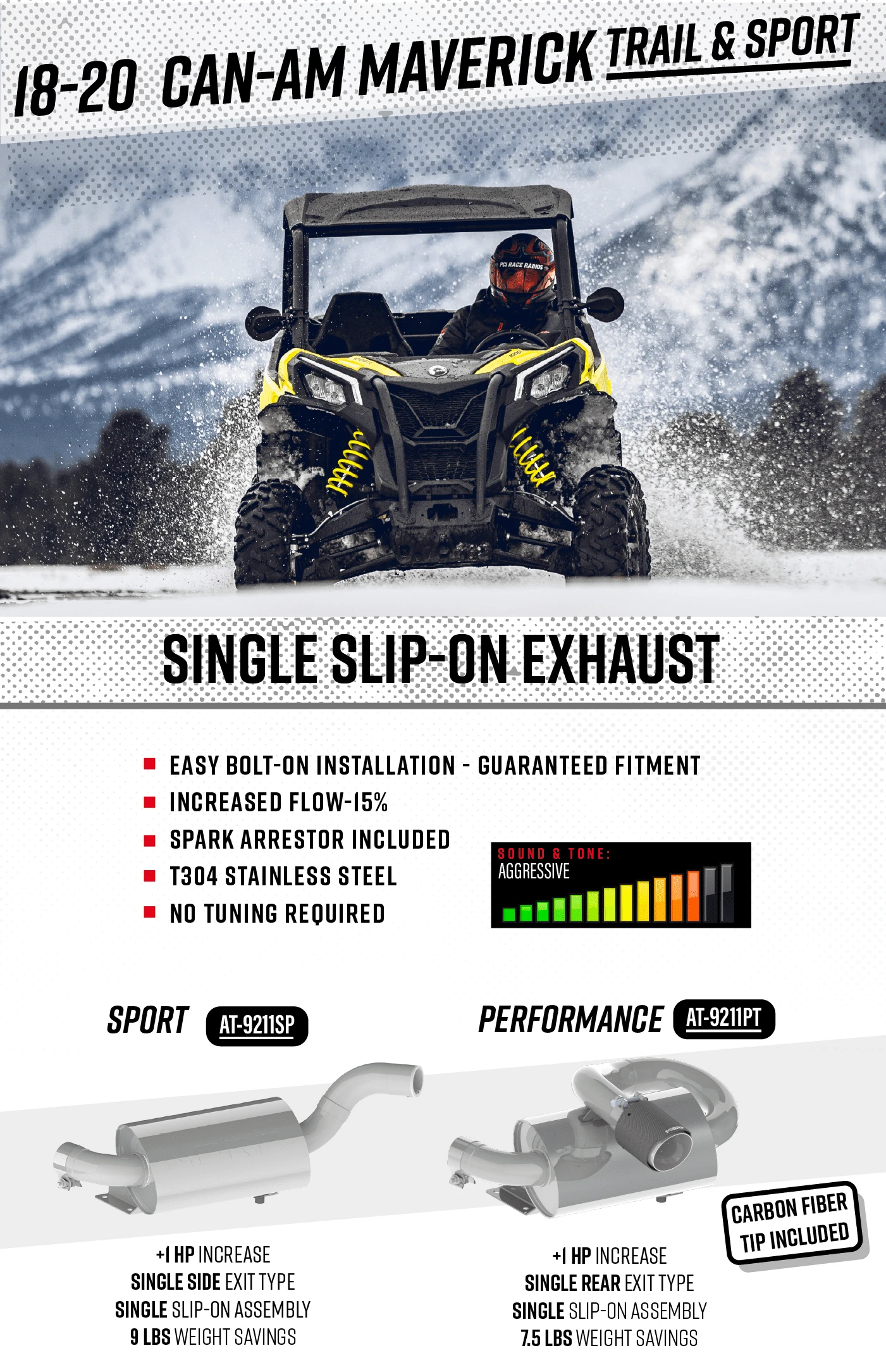 MBRP Single Slip-on Muffler For 2018-21 Can-Am Maverick Sport 1000R With Carbon Fiber Tip