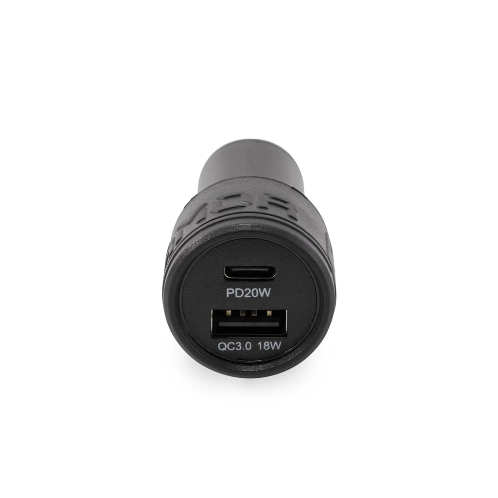 Keeping your devices charged while on or off-road is just as important as keeping your vehicle tuned up. We’ve rebuilt our popular Dual USB Charger with an all-billet-aluminum body, and this time included a high-speed USB-C charging port along the standard Quick Charge 3.0 USB-A charging port – bringing the maximum charging capability to 38W.