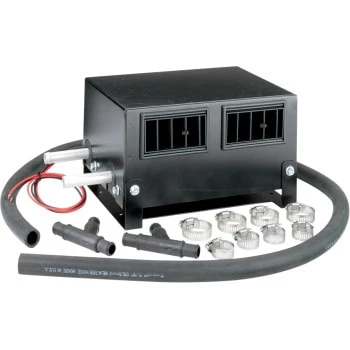 - 12V universal cab heater kit for machines with 1″ and 3/4″ radiator hoses