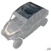Made from powder coated 1/8″ (.125) thick aluminum that will protect you from the elements for many years! Sunroof is made from tough tinted Polycarbonate that helps block the sun yet provides a view. This two piece roof has a fast back rear spoiler that offers more rear coverage than most roofs on the market. This is important because the back bar of the roll cage is barely past the seats in the KRX.