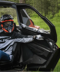 Enhance the rider protection in your vehicle with a set of these high-value, versatile Canvas Upper Half Doors. They install easily atop the stock door panels in designated, integrated mounting locations, and they provide shade and reliable protection from the elements in cold weather conditions These Polaris Engineered doors have zip-out clean poly windows that provide light and visibility or when removed from the vehicle, increase the airflow into the cab area. The 23 oz. mold-resistant and UV stable material give these doors strength and durability against harsh weather conditions. The steel tube framework and vinyl crack-resistant material all reinforce the strength of the doors. Once installed, these doors swing open and closed with the stock doors to provide rider ingress and egress. Combine with full windshield, lower doors, rear panel, and roof for complete coverage in cold weather conditions.