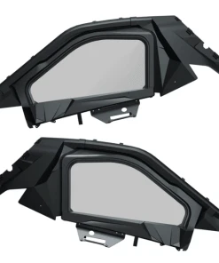 Enhance the rider protection in your vehicle with a set of these high-value, versatile Canvas Upper Half Doors. They install easily atop the stock door panels in designated, integrated mounting locations, and they provide shade and reliable protection from the elements in cold weather conditions These Polaris Engineered doors have zip-out clean poly windows that provide light and visibility or when removed from the vehicle, increase the airflow into the cab area. The 23 oz. mold-resistant and UV stable material give these doors strength and durability against harsh weather conditions. The steel tube framework and vinyl crack-resistant material all reinforce the strength of the doors. Once installed, these doors swing open and closed with the stock doors to provide rider ingress and egress. Combine with full windshield, lower doors, rear panel, and roof for complete coverage in cold weather conditions.
