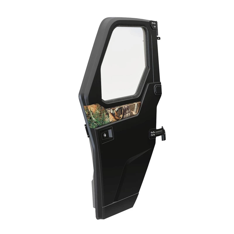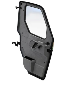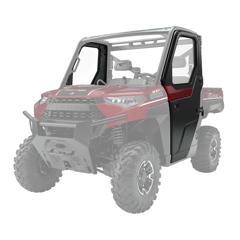 Complete your cab enclosure with the perfectly-fitting Crank Window Doors. Engineered with automotive-quality style, this Polaris RANGER door system turns your cab into a quiet and comfortable complete package. These RANGER doors fit perfectly into the ROPs with predesignated mounting locations and provide quick on & off removal after initial installation. The manual utv doors feature a sure-closing, tight sealing 360° gasket seal at the ROPs, and the glass windows can be adjusted infinitely with the crank. With rear hinging, getting in and out of your cab has never been easier. The 1-inch tubular steel frame lines laminate safety glass that blocks UV rays and is strengthened by an interlayer of polyvinyl butyral (PVB). A wipe-clean soft-touch liner adds comfort and convenience and is now easier to clean thanks to a new blended material. The interior liners seal-out unwanted cab noise and deliver a premium level of fit and finish. Additional convenient features include interior and exterior door handles, crank windows, and a built-in storage compartment.