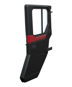 Complete your cab enclosure with a set of premium, perfectly-fitting Manual Rear Doors. Engineered with automotive-quality style, this Polaris RANGER door system creates a comfortable and quiet cab experience while reducing mud, tire spray, and debris. These RANGER doors fit perfectly into the ROPs with predesignated mounting locations and provide quick on & off removal after initial installation. The manual utv doors feature a sure-closing, tight sealing 360° gasket seal at the ROPs, and the glass windows can be adjusted infinitely with the crank. With rear hinging, getting in and out of your cab has never been easier. The 1-inch tubular steel frame lines laminate safety glass that blocks UV rays and is strengthened by an interlayer of polyvinyl butyral (PVB). A wipe-clean soft-touch liner adds comfort and convenience and is now easier to clean thanks to a new blended material. The interior liners seal-out unwanted cab noise and deliver a premium level of fit and finish. With truck-like quality and style, additional convenience features include interior push button door handle, exterior flush paddle handle, and built-in storage compartment. Customize your RANGER premium doors with exterior color-matched accent panels (pictured, sold separately). Pre-designated interior door speaker location, integrated panels allow color-matching or customization. This is a Pro Shield Cab System Component