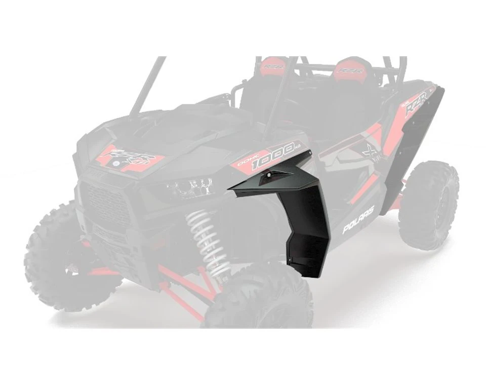 A mud slingerās best friend. Throttle through the mud and sling it high, with these Wide Front Fender Flares installed the muck and goo are held at bay and not on your lap. Extra-wide by design, each attaches easily with no drilling or tapping required. Molded to perform and accentuate the rugged and ready looks of your RZR, youāll attack mud pits with a wide-eyed grin.
