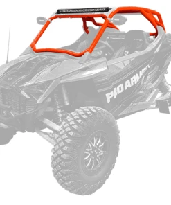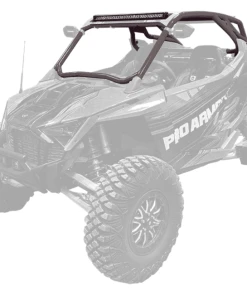 RZR Pro R 2- seat Cage System available with V or no intrusion bar. This cage completely changes the lines of your Polaris RZR Pro R 2- seat. Made of 1.75″ & 2″ DOM steel tubing and MIG welded. Easy install with no drilling necessary and comes with all necessary hardware. We also offer a matching aluminum roof with or without a light pocket.