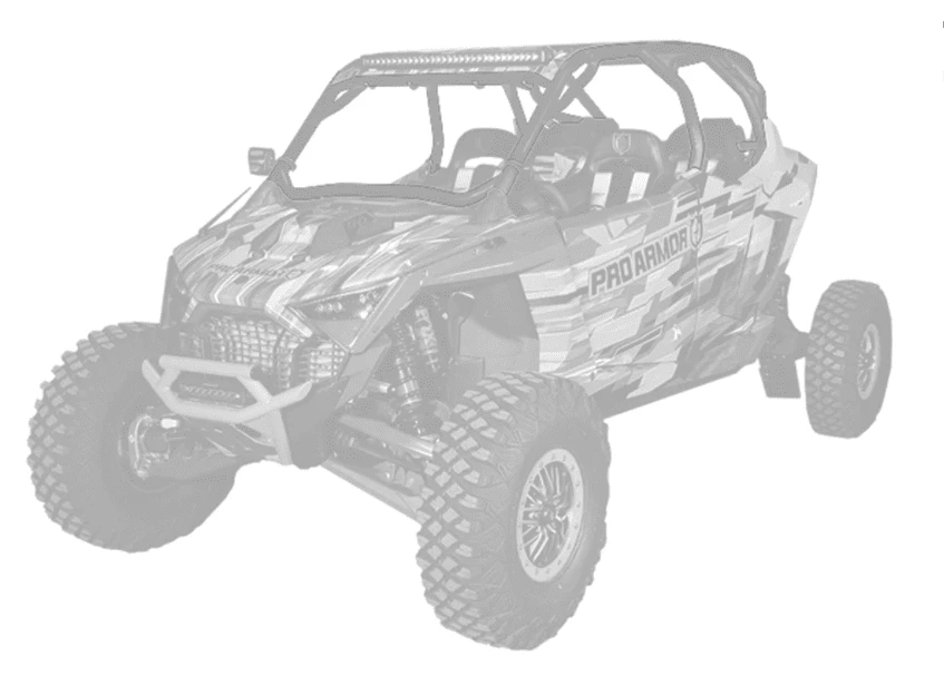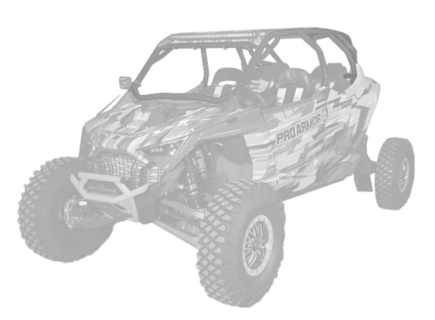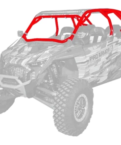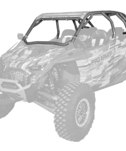 RZR Pro R 4- seat Cage System available with V or no intrusion bar. This cage completely changes the lines of your Polaris RZR Pro R 4- seat. Made of 1.75″ & 2″ DOM steel tubing and MIG welded. Easy install with no drilling necessary and comes with all necessary hardware. We also offer a matching aluminum roof with or without a light pocket.