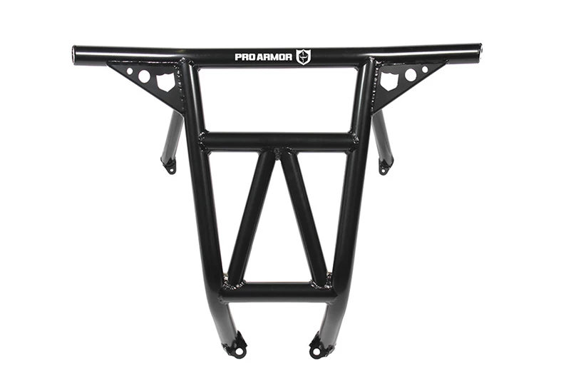 Pro Armor Race Style Rear Bumper. Made from Aluminum this bumper combines strength with light weight. Fully covering the rear of your RZR this bumper adds protection where needed but keeps the weight to a minimum. Our rear bumper takes just minutes to install by mounting to the chassis using the included hardware.