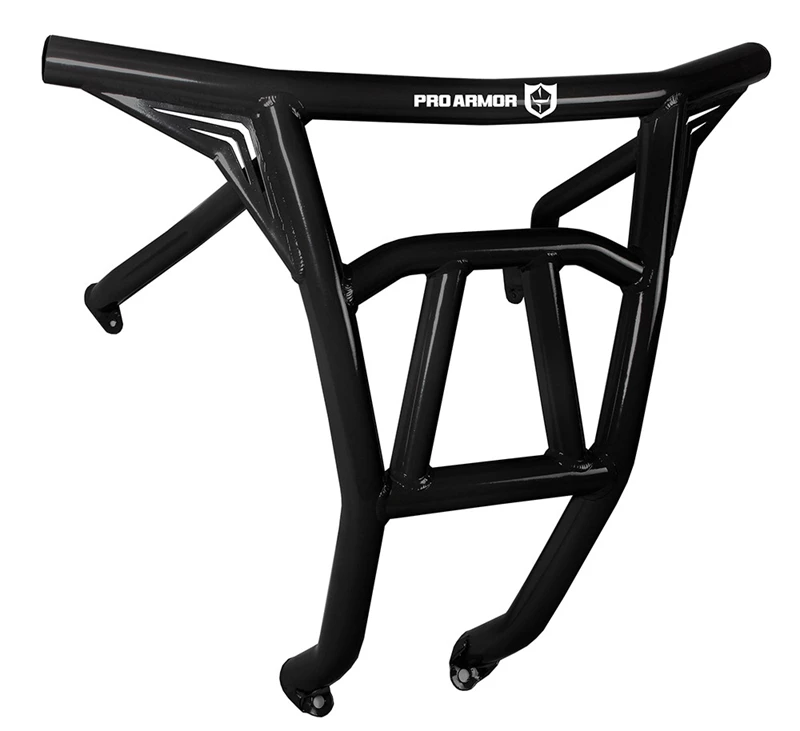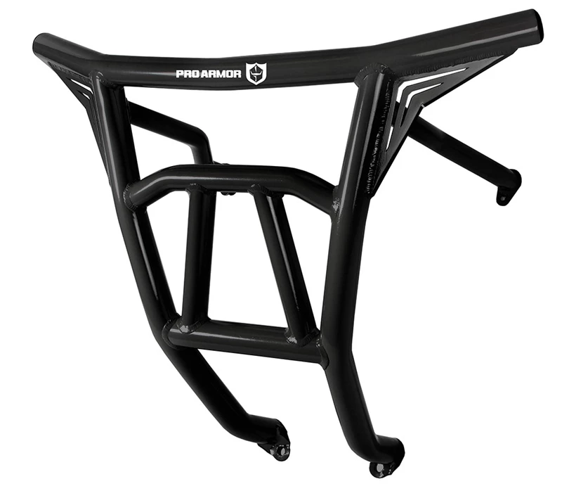 Pro Armor Sport Styled Rear Bumper. Made from Aluminum this bumper combines strength with light weight. Covering the rear of your RZR this bumper adds protection where needed but keeps the weight to a minimum. Our front bumper takes just minutes to install by mounting to the chassis using the included hardware.