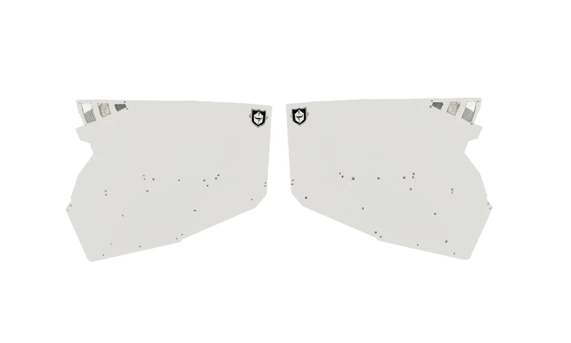 The Pro Armor Stealth door skin has all the benefits of a half door with the ease of install of a door insert. Our all-aluminum .080 thick door skin easily installs over the top of the existing Polaris RZR stock door just remove the door install the skin and reinstall the door. With strategic mesh inserts and a unique design, the door keeps the air flowing while still protecting you from the environment. Includes all necessary hardware and instructions. Sold in pairs for 2 door model. 4 door model also available.