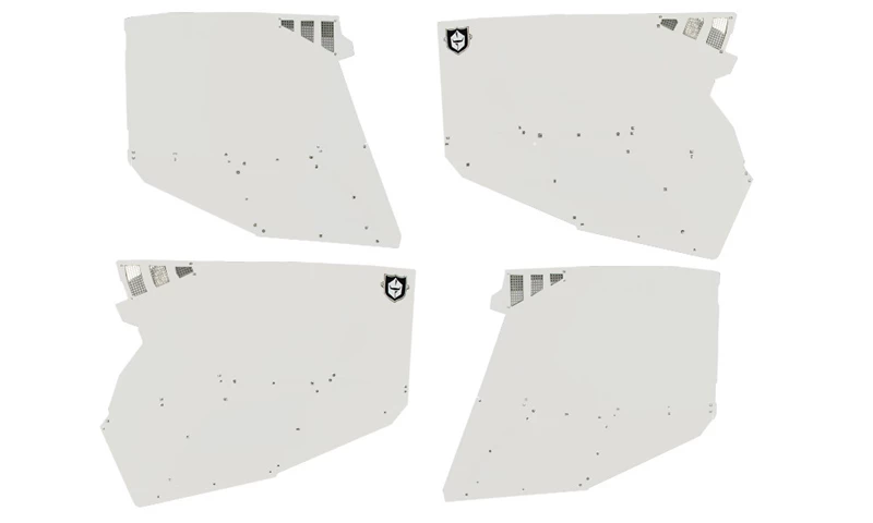 Set includes all four doors. Mounts directly over stock doors using existing and included hardware. Made from .080″ thick Aircraft Grade Aluminum