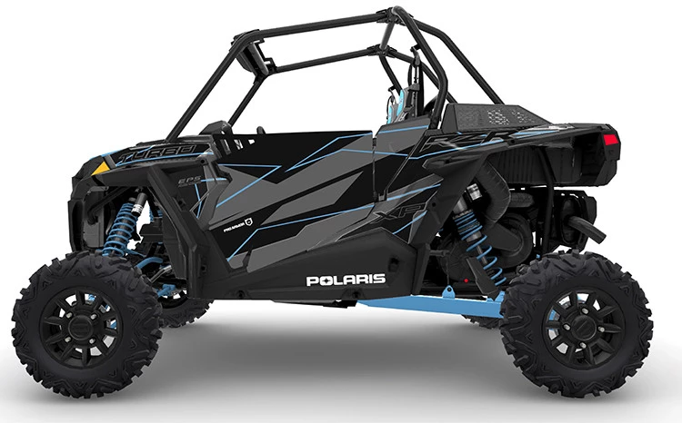 Looking for graphics to complete the look on your RZR and colorways for your Pro Armor RZR XP1K Turbo Stealth Doors. Look no further. This Kit Consists of a Titanium/Black/Sky Blue color scheme this graphic kit will match the colors on your Titanium Metallic XP1K Turbo. Made from Arlon brand vinyl and backing for a strong application and withstand elements and fade.