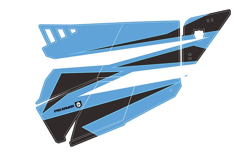 Looking for graphics to complete the look on your RZR and colorways for your Pro Armor RZR XP1K Stealth Doors. Look no further. This Kit Consists of a Sky Blue/Black/White color scheme this graphic kit will match the colors on your Sky Blue XP1K. Made from Arlon brand vinyl and backing for a strong application and withstand elements and fade.