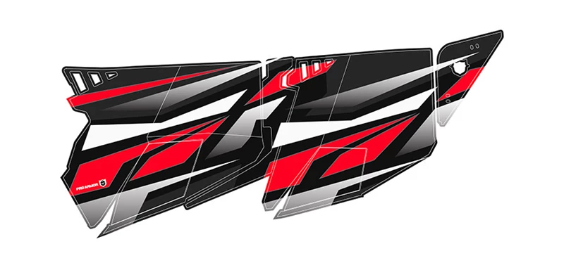 Looking for graphics to complete the look on your RZR and colorways for your Pro Armor RZR XP4 Stealth Doors. Look no further. This Kit Consists of a Black/Silver/Red color scheme this graphic kit will match the colors on your Black Pearl & Ride Command XP4. Made from Arlon brand vinyl and backing for a strong application and withstand elements and fade.