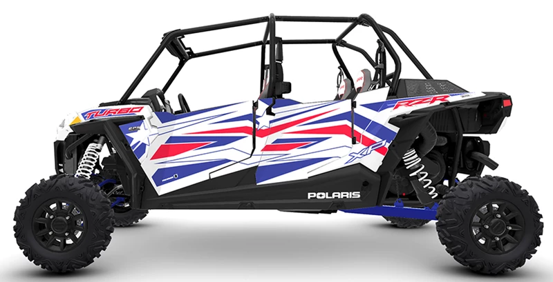 Looking for graphics to complete the look on your RZR and colorways for your Pro Armor RZR XP4 Turbo Traditional Paddle Latch Doors. Look no further. This Kit Consists of a White/Red/Blue color scheme this graphic kit will match the colors on your White Lightning LE XP4 Turbo. Made from Arlon brand vinyl and backing for a strong application and withstand elements and fade.