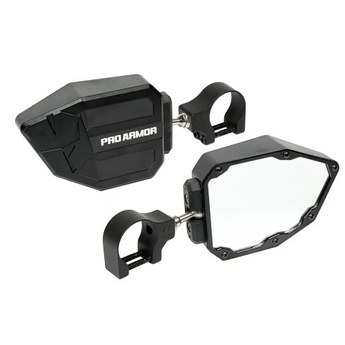 Pro Armor Side View Mirrors are a useful and stylish addition to your SXS. Constructed with a lightweight polymer material for the body and a high-grade aluminum bezel they are designed to be strong and lightweight adding visibility to your ride. The unique design means that they are fully adjustable and have a breakaway feature that allows you to control the resistance when struck by an object rock or branch. This prevents damaging or crushing the mirror body. Universal application for 1.75″ diameter tubing.