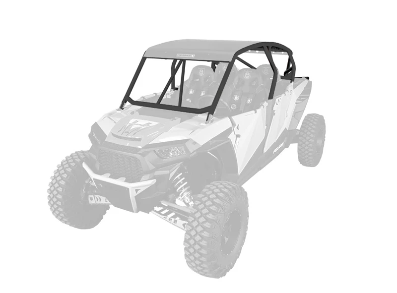 2014-2018 XP4 1000 Baja cage system available with no intrusion bar. This cage completely changes the lines of your 2014-2018 Polaris XP4 1000 four-seater. This sleek cage is close to 5 inches lower than the stock Polaris cage and is made of 1.75 DOM steel tubing and TIG welded. With its popular Baja rear section it easily attaches to the rear section of the RZR using existing hardware. It is easy to install with no drilling necessary and comes with all necessary hardware. We also offer a matching aluminum roof with or without a light pocket.