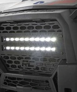 Command The Dark with Rough Country’s 10-inch Slimline LED Grille Kit for Polaris RZR 1000 models. This handy solution includes everything you need to upgrade your RZR with a single or dual Rough Country 10-inch LED light bar mounted into the factory bumper for outstanding illumination.
