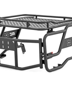 Innovative Design. This durable, tubular steel tire carrier is designed to carry a full sire replacement tire, displayed prominently on the rear of your UTV’s cargo rack. Each rack features a rear swing out door that allows full access to the bed and a basket up top for additional cargo. This innovative design also utilizes multiple tie-down locations ensuring that you can secure your cargo from every direction. Give your RZR an aggressive look and practical access to a full-sized spare anytime you need it with Rough Country’s Cargo Rack Spare Tire Carrier!