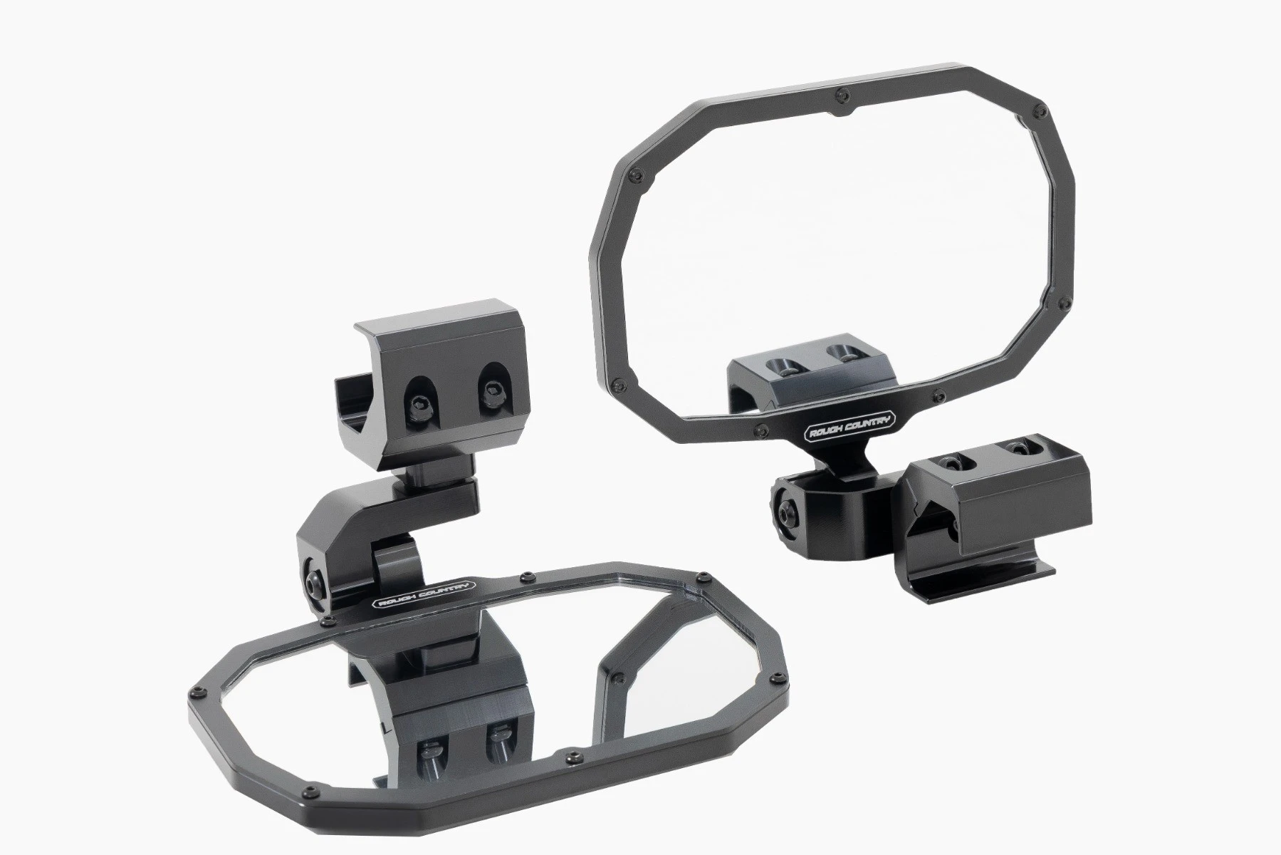 Enhanced Visibility & Functionality. Gain additional visibility with Rough Country’s Universal Aluminum Side Mirrors. These bolt-on foldable mirrors easily install to your UTV’s Roll cage giving you maximum visibility of the trails behind you. Rough Country’s side mirrors feature a scratch and UV-resistant black finish for durability and great looks. Each mirror offers a 360º rotatable mount that can also be folded 220º in a forward or backward position.