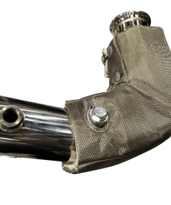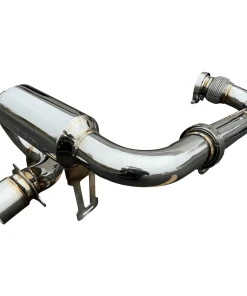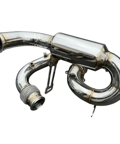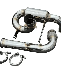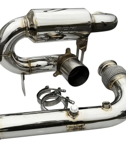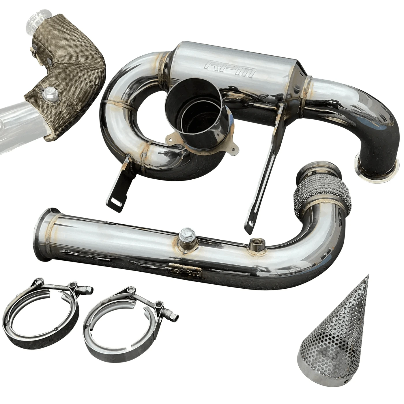 With the popularity of our RPM Sport Muffler and BRP’s increase in power over since that exhaust was built PLUS the amount of power these machines are now capable of easily making, we knew it was time to build something bigger! That’s what was accomplished! Introducing the FULL 3″ Monster Core RPM exhaust system. Starting with our turbo size-matched flange we quickly move to the HD chain-link flex pipe. From here we move to our smooth transition bend catless mid-pipe that has TWO O2 bungs pre-installed. The muffler and mid-pipe are connected with a V-Band clamp. Moving to the muffler we’ve incorporated a similar design to our 2.5″ muffler. The most important part of this party is the 3″ perforated muffler with an internal baffle that produces music to the ears. Our muffler system utilizes the factory tip and rear fascia! The factory chassis-mounted heat shields can be used, and a new exhaust hanger bracket IS included! A factory spark arrestor can be used.