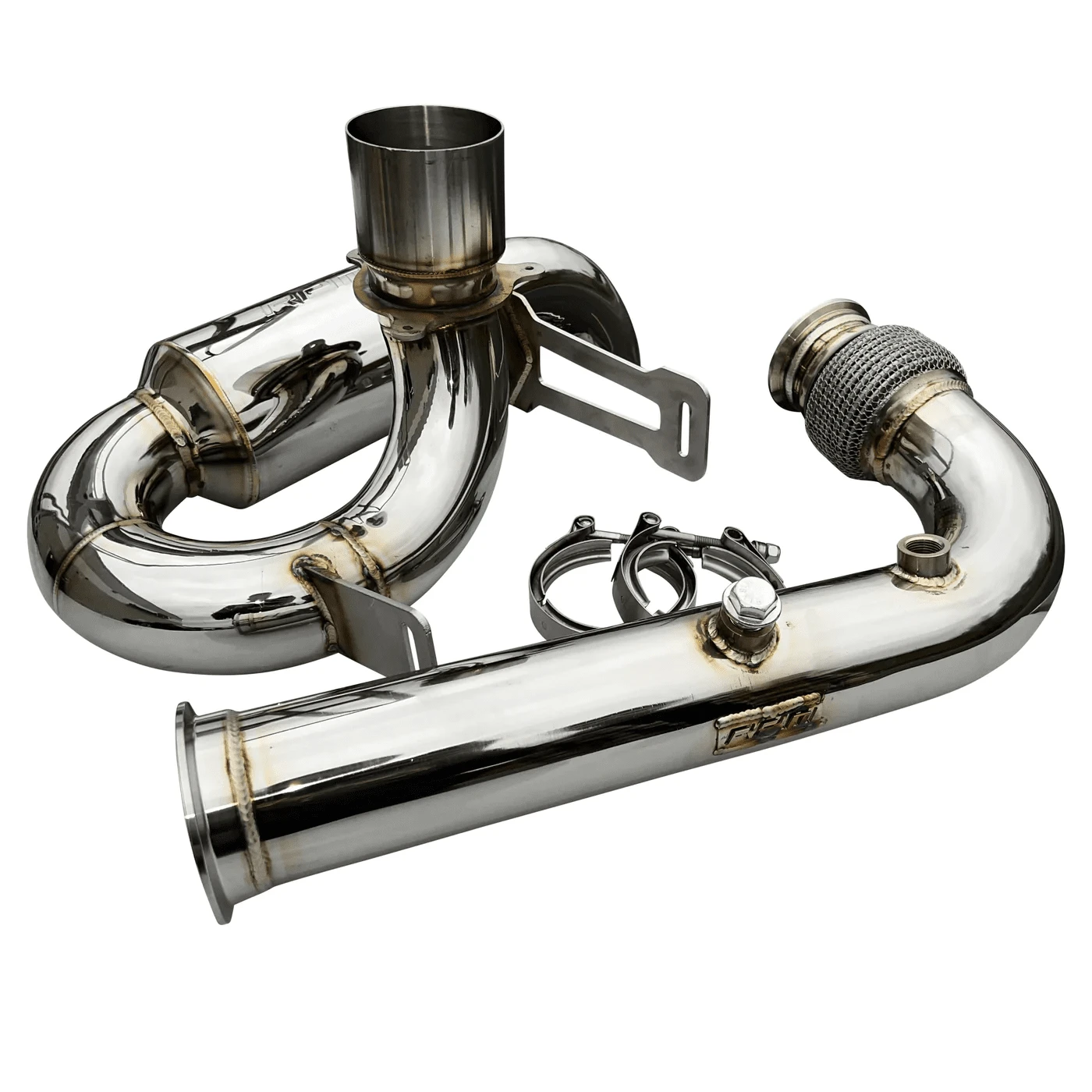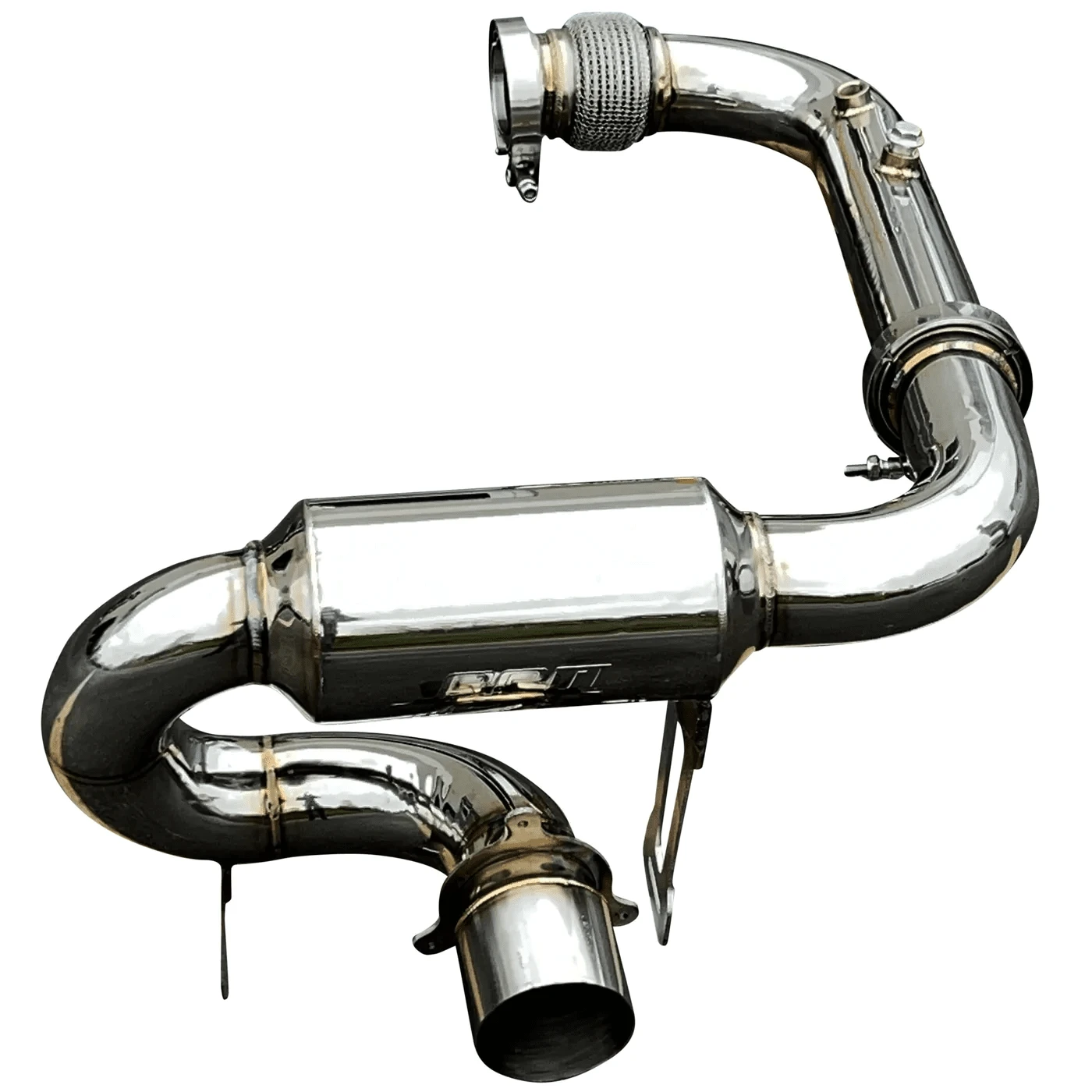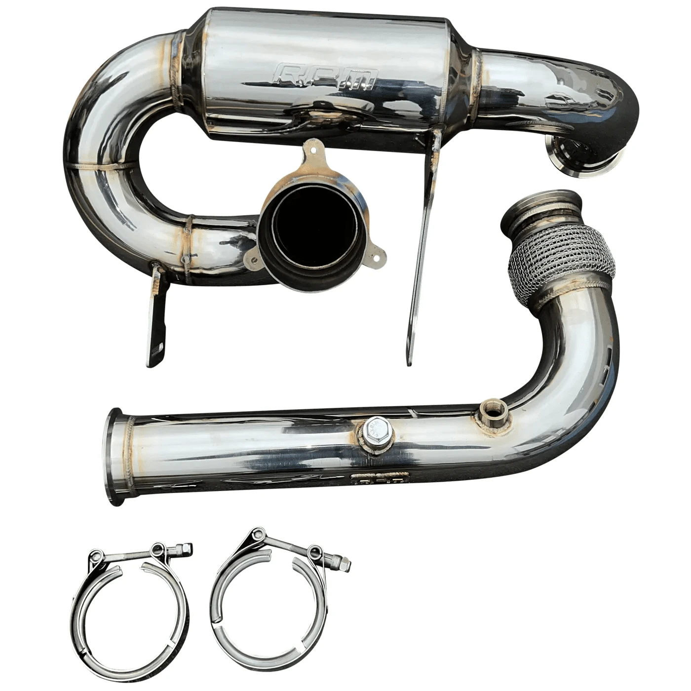 With the popularity of our RPM Sport Muffler and BRP’s increase in power over since that exhaust was built PLUS the amount of power these machines are now capable of easily making, we knew it was time to build something bigger! That’s what was accomplished! Introducing the FULL 3″ Monster Core RPM exhaust system. Starting with our turbo size-matched flange we quickly move to the HD chain-link flex pipe. From here we move to our smooth transition bend catless mid-pipe that has TWO O2 bungs pre-installed. The muffler and mid-pipe are connected with a V-Band clamp. Moving to the muffler we’ve incorporated a similar design to our 2.5″ muffler. The most important part of this party is the 3″ perforated muffler with an internal baffle that produces music to the ears. Our muffler system utilizes the factory tip and rear fascia! The factory chassis-mounted heat shields can be used, and a new exhaust hanger bracket IS included! A factory spark arrestor can be used.