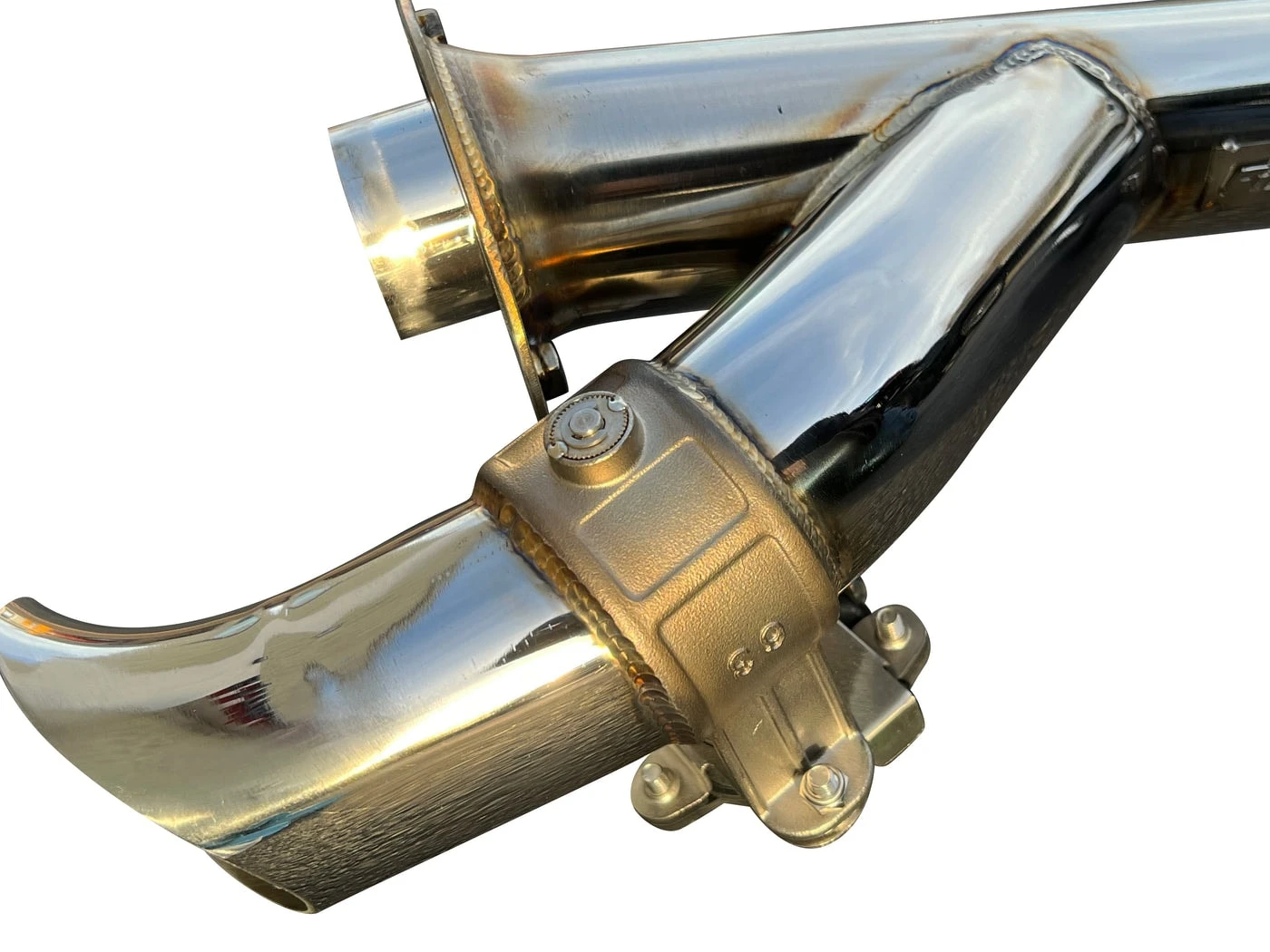 - Connects to the OEM or aftermarket mufflers that use the stock style mid-pipe