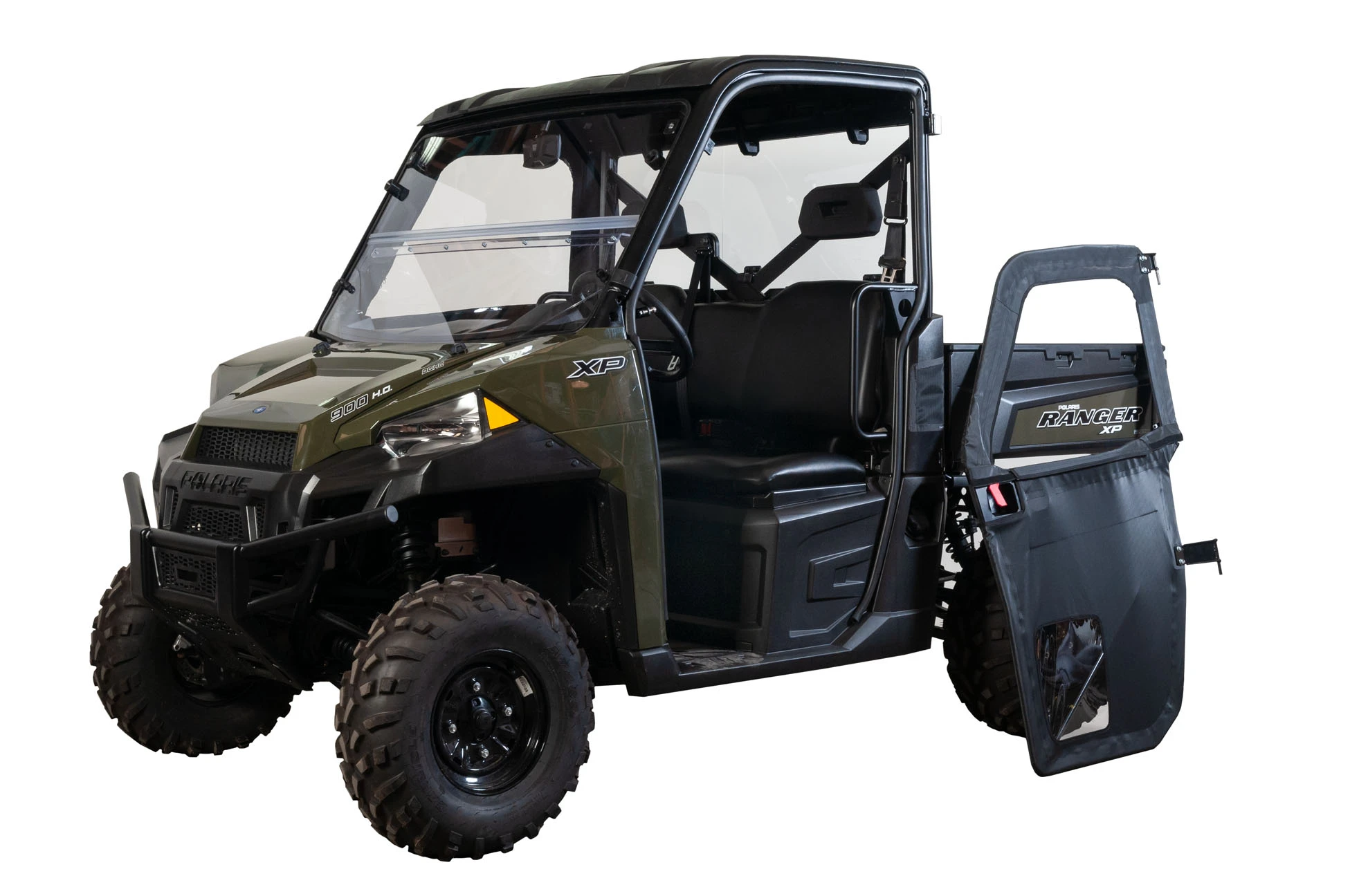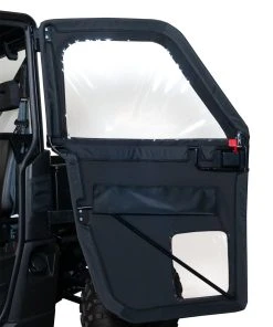 The Seizmik Framed Door Kit for the Polaris Full Size Pro-fit Ranger attaches to the vehicle without cutting into body plastics and requires NO drilling to install. Equipped with an automotive grade gasket, durable UV resistant PVC coated heavyweight nylon fabric, and an automotive style latching system, the Seizmik Framed Door Kit provides a tight fit around the perimeter of the door to help resist water and wind intrusion into the cab.