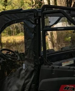 These soft cab doors use heavy-duty zippers to open and close and give you total airflow control. The zippers are tough enough to handle assault from dirt and debris and still function. The doors can be opened and secured with easy-to-use buckles so they stay out of your way when you want to let the breeze in.