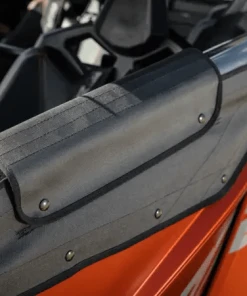 You never know what the weather’s going to be like. The forecast is calling for a sunny day, yet your buddy just called and said they’re waiting to unload the trailer because it’s raining. Luckily, these RZR PRO XP 4 upper doors will have you prepared. The window uses a heavy-duty, snag-free zipper so you can unzip it, roll it down, and secure it in place with the flap and snaps. Plus, when your window is rolled down, you can use it for a cushioned armrest. And if you know the weather is going to be nice, you can remove and leave the central portion of the door at home without removing the entire cab enclosure.