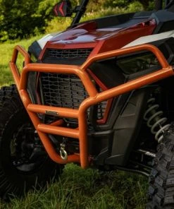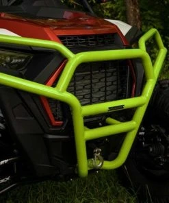 When you put a front brush guard like this on your UTV, you’re making a statement. The UV-resistant powder coating and CNC machined end caps show you don’t compromise. The tubing bent to match your Turbo’s predator-style front end will turn heads and show everyone that you’re there to play hard. It’s a bumper for the bold.