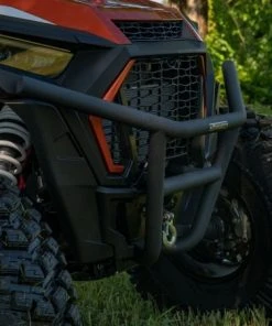 SuperATVâs Low Profile Front Bumper for the Polaris RZR XP Turbo gives you serious front-end protection and rugged looks. The 1.75â diameter tube steel offers superior protection for your UTVâs front-end bodywork and grill. Itâs the complete protection your RZR needs.