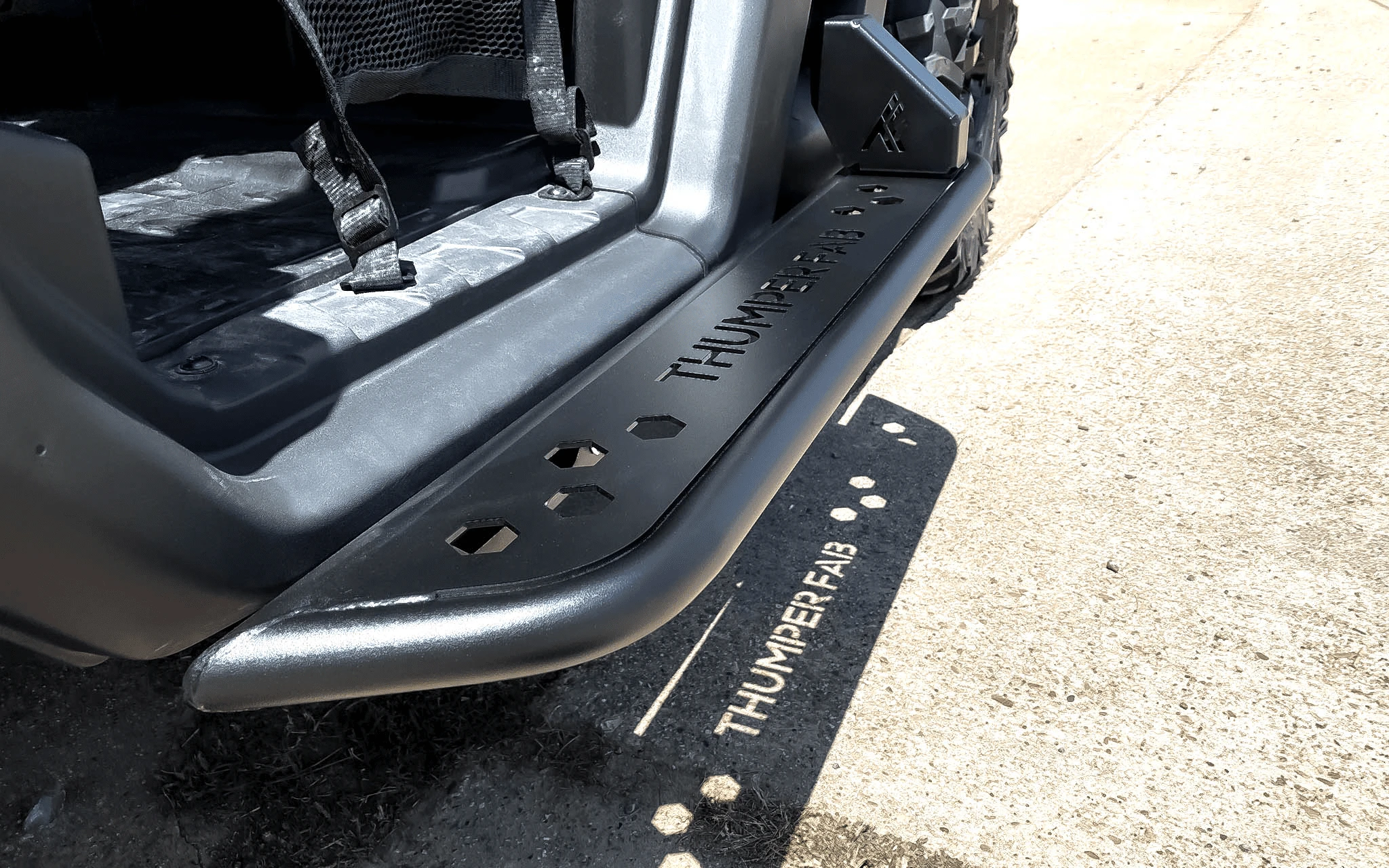 If you’re looking for a nerf rail or side step that’s big, bad, and built to last, look no further than the Thumper Fab Defender Nerf Rails for your Can-Am Defender. These beefy rock rails are made from the same DOM tubing that we use for roll cages, so you know they’re tough enough to handle whatever you throw at them. Plus, they’re compatible with your Can-Am Defender Limited doors, so you can rest easy knowing your doors are protected from trail debris and other obstacles. So go ahead and take on the roughest terrain – with the Defender Nerf Rails, you’re ready for anything.