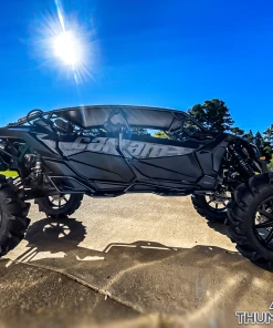 Dramatically change the look of your X3 MAX with this Thumper Fab roll cage. Designed to be extremely low, sleek, and strong. This cage comes fully assembled, powder coated gloss black, and is ready to be bolted on to your ride. Made with 1-3/4″ DOM .095 wall thickness tubing for superb strength.