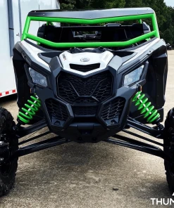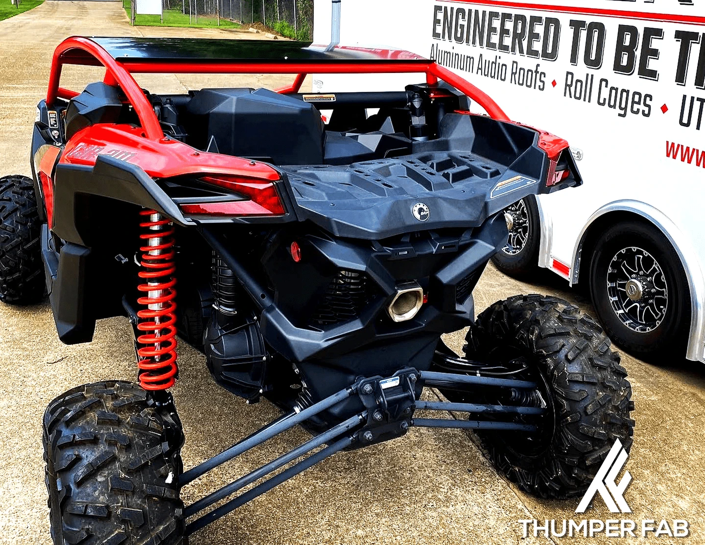 Dramatically change the look of your X3 with this Thumper Fab roll cage. Designed to be extremely low, sleek, and strong. This cage comes fully assembled, powder coated gloss black, and is ready to be bolted on to your ride. Made with 1-3/4″ DOM .095 wall thickness tubing for superb strength.