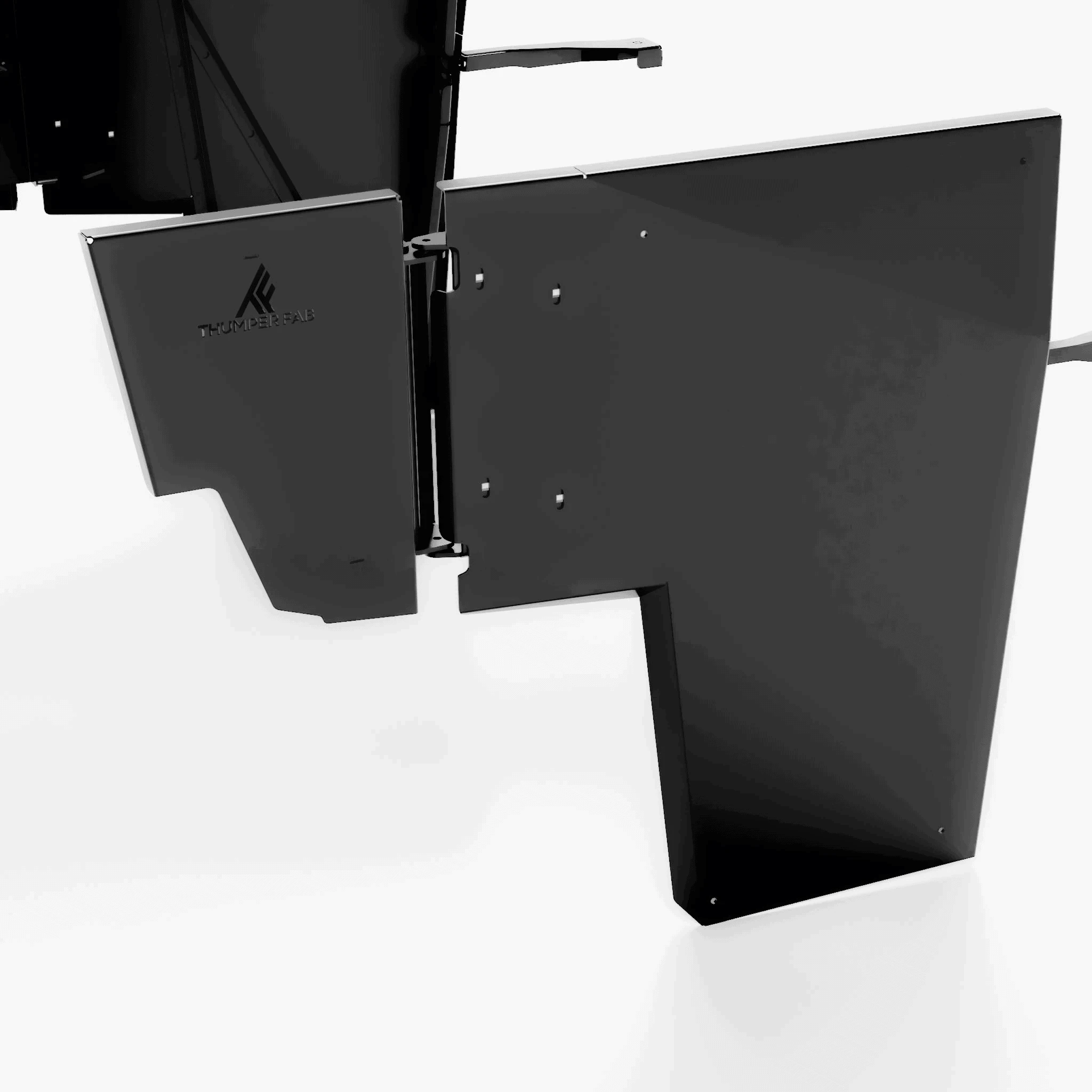 Thumper Fab Polaris Ranger Half Doors are constructed from solid steel from top to bottom. Rubber trim around all edges provides a rattle free seal and dual latching handles promise solid door closing every time. These are easily bolted-on to your Polaris Ranger and add great style and protection from trail debris. Manufactured in the USA!