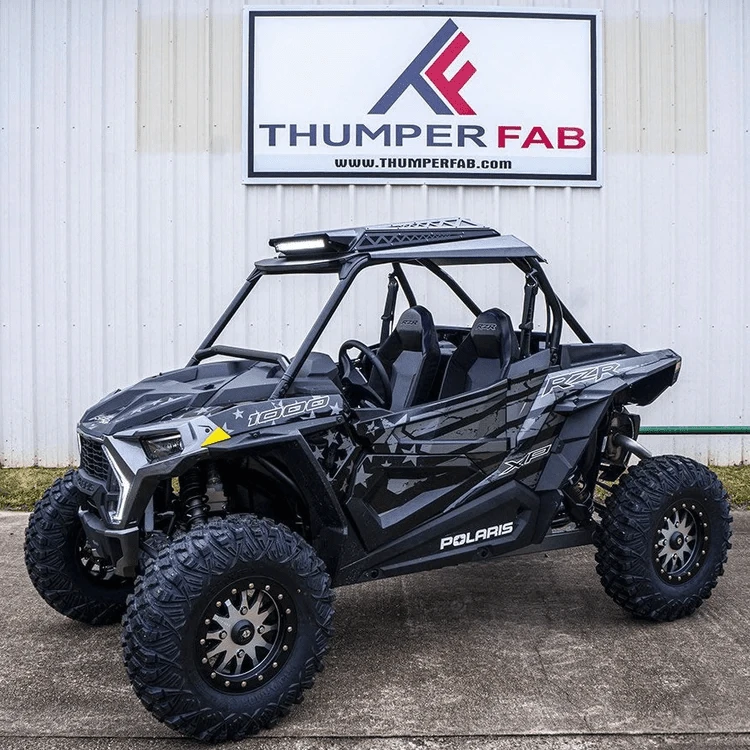 Look sharp in your Polaris aftermarket roll cage – designed to be extremely low, sleek, and strong. This RZR roll cage is ARC compatible giving you the first and only chopped cage that works with a Thumper Fab Audio Roof! Get the look you want AND get that Thumpin’ sound! This RZR Roll Cage is made in the USA with 1-3/4″ DOM .095 wall thickness tubing for superb strength, this cage build comes fully assembled, powder coated to your specifications, and is ready to be bolted on to your ride.