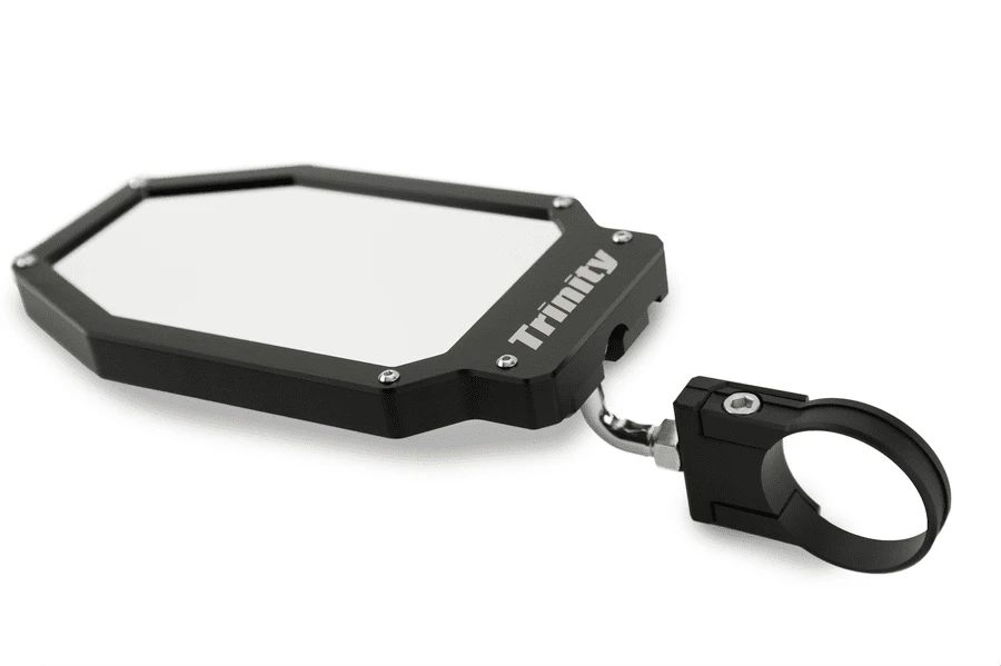 Not all mirrors are created equal. That’s why Trinity-Racing® designed the APEX mirror to be the best billet aluminum mirror in the industry. Sure, this mirror looks great – but it’s also strong and functional. Trinity’s design team spent countless hours creating a unique breakaway design that holds solid when hitting whoops at 70 MPH but easily folds if you happen to hit a tree branch. The proprietary clamp design makes install and removal a breeze! Simply slide the clamp over the roll cage and install the two Allen® bolts, find your preferred position and snug them down! Enough reading – go get these mounted up on your car and go for a drive!