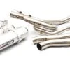 The head and mid pipes are designed with 304 brushed stainless steel for resistance of rust and corrosion along with the ability to provide a low maintenance clean finish. Along with stainless steel hardware, the kit comes with 6061 billet machined muffler mounting brackets, exhaust tips and inlet flanges. The flanges strongly seal the exhaust manifold and exhaust pipe without leakage. For the style of preference, the mufflers are featured in a brushed finish or a high temperature black powder coating.