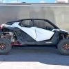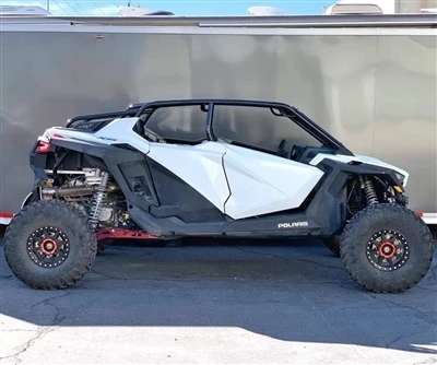 The Vent Racing 4-seat Trucker cage is a direct bolt on for the Polaris RZR PRO XP and it adds strength, safety, and rigidity. Like all of Vent Racing’s cages, it is made with .095 wall DOM, fixture jig built, inert gas welded, with billet machined connectors and cups to insure a very strong connections. The roofs are built from .080 5052 aluminum for added strength. Vent’s cages are wider then the factory cages with a center bar in the roof; these two factors mean most of the accessories for the stock cage will not work.
