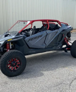 Our 4-seat Trucker cage is a direct bolt-on for the Polaris RZR PRO R 4 and it adds strength, safety, and rigidity. Like all of our cages it is made with .095 wall DOM, fixture jig built, inert gas welded, with billet machined connectors and cups to insure very strong connections. All of our roofs are built from .080 5052 aluminum for added strength. Our cages are wider then the factory cages with a center bar in the roof; these two factors mean most of the accessories for the stock cage will not work. A Pallet & Handling fee of $260 is applied to all cage shipments.