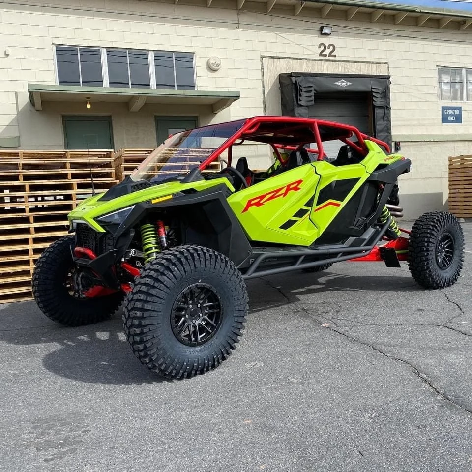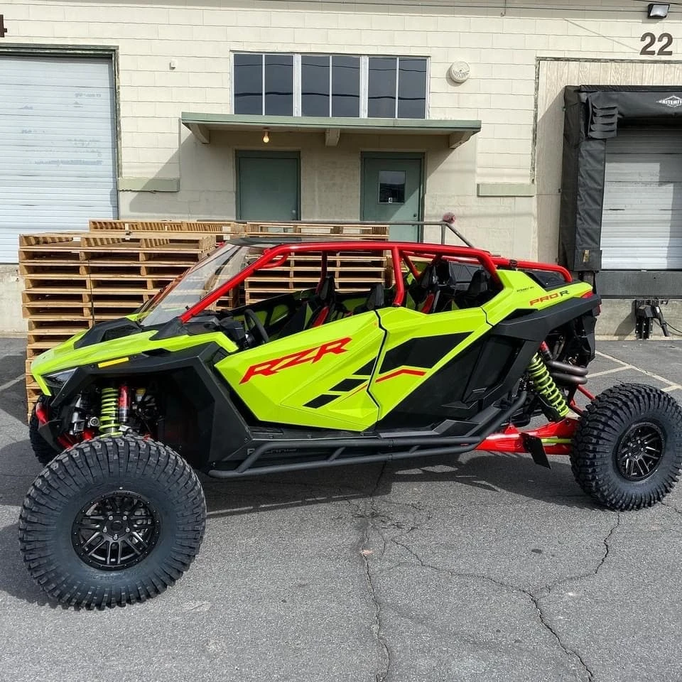 Our 4-seat Trucker cage is a direct bolt-on for the Polaris RZR PRO R 4 and it adds strength, safety, and rigidity. Like all of our cages it is made with .095 wall DOM, fixture jig built, inert gas welded, with billet machined connectors and cups to insure very strong connections. All of our roofs are built from .080 5052 aluminum for added strength. Our cages are wider then the factory cages with a center bar in the roof; these two factors mean most of the accessories for the stock cage will not work. A Pallet & Handling fee of $260 is applied to all cage shipments.