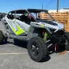 Our 4-seat Trucker cage is a direct bolt-on for the Polaris RZR Turbo R and it adds strength, safety, and rigidity. Like all of our cages, it is made with .095 wall DOM, fixture jig built, inert gas welded, with billet machined connectors and cups to ensure a very strong connection. All of our roofs are built from .080 5052 aluminum for added strength. Our cages are wider than the factory cages with a center bar in the roof; these two factors mean most of the accessories for the stock cage will not work.