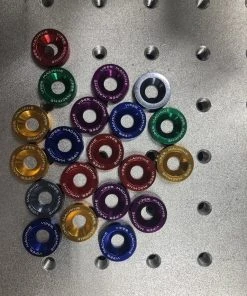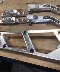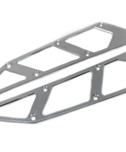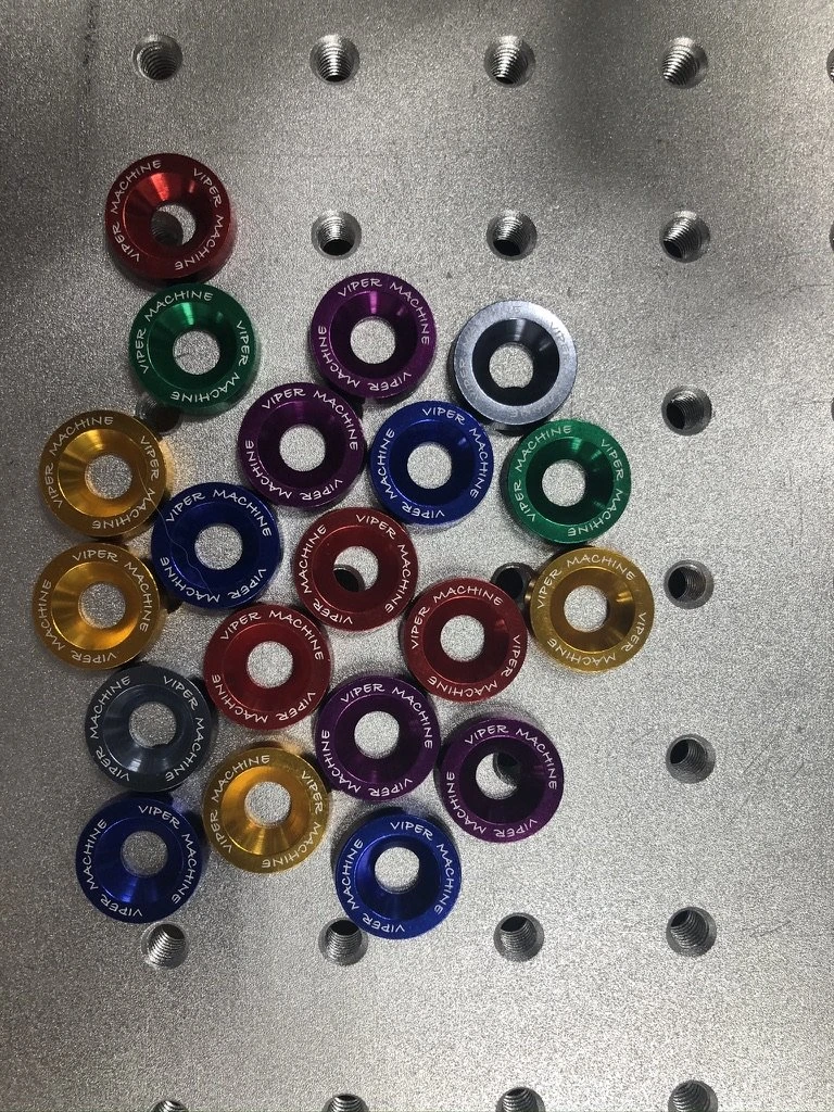 These custom pieces are designed to help protect your factory “Frog Skin” intake covers from unwanted intrusions by sticks and brush…..They also overlay the glued edge of the skin to reduce peeling……The Billet construction allows an unmatched, premium fit and finish that is virtually indestructible…….Sold in pairs and utilize the factory plastic rivets for install…..Also available with billet washers and stainless screws, anodized in various colors and laser engraved to add that totally unique look…